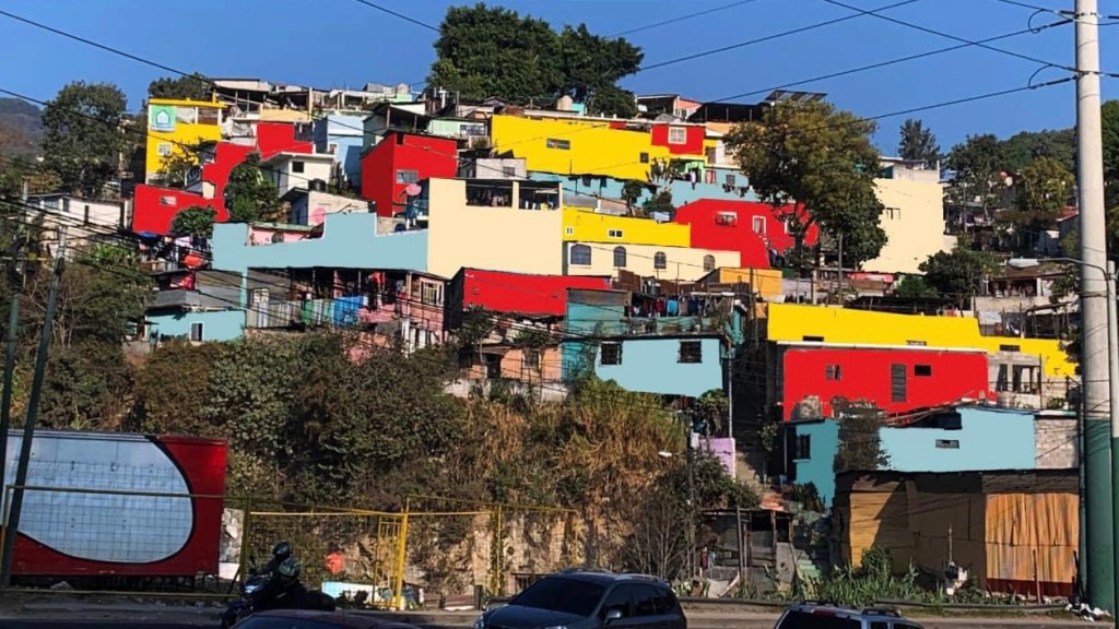 El alcalde de la Municipalidad de Mixco de Guatemala da color a las casas de El Cenicero proporcionando una nueva perspectiva a las personas que pasan en la Carretera Panamericana.